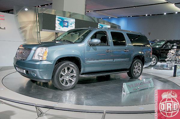 Но сегодня и в секторе больших внедорожников тон задают варяги, а именно: Audi Q7, Porsche Cayenne, Volkswagen Touareg и частично Mercedes-Benz GL (он родом из Вэнса, штат Алабама). Казалось, эти модели слишком дорогие, чтобы видеть в них угрозу «ковбойским» внедорожникам. Однако мы стали свидетелями дебюта Buick Enclave, почти идеально вписывающегося в силуэт Audi Q7, с задней частью, недвусмысленно напоминающей корму Touareg! Причем, по словам вице-президента GM Роберта Лутца, модель с аналогичной внешностью уже поступит через пару лет в производство. Да, чуть не забыл, Buick – это не только одна из старейших автомобильных марок Америки. У нее еще и самый старый покупатель, причем его средний возраст продолжает увеличиваться – еще пару лет назад он составлял 62 года, а теперь уже 63. Но «джиэмовцы» упорно гнут прежнюю линию: камфорное дерево и дорогая кожа в салоне, хромированные побрякушки снаружи. Интересно, так ли необходимы ценителям этих, не побоимся слова, ритуальных атрибутов четыре жидкокристаллических монитора? По ним пассажиры трех рядов сидений могут отслеживать каждый свое: смотреть видео, сверяться с котировками акций, играть в компьютерные игры. Передний монитор (это «ноу-хау» компании) одновременно является и зеркальцем. Он встроен в противосолнечный козырек. Кстати, Buick Enclave – первый из автомобилей, возводимых на Lambda (новые платформы GM поименованы буквами греческого алфавита). В пригороде Детройта под новую платформу уже возведен завод. Поговаривают, правда, что первая серийная новинка на этой платформе может нести эмблему отделений Saturn или GMC – ох, уж этот badge-engineering!