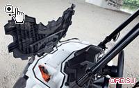 Но это все теория, которая, как известно, суха, и поэтому пора сесть за руль и пробовать машинку в деле. Посадка в аппарат удобная, как и единственное кресло, положение которого даже регулируется в продольном направлении. По бокам пилота закрывают сетки и боковые дуги, сверху — каркас безопасности. Так что не стоит садиться в машинку без шлема, а заняв место пилота, нужно обязательно пристегнуться. При всей кажущейся безобидности это все же не автомобиль, и вероятность контакта вашей головы со стальной дугой после подброса на кочке близка к ста процентам. Руль удобно ложится в руки. Рычаг управления трансмиссией, правда, расположен немного необычно: сказывается классическое квадропрошлое модели. Первые заезды по легкому бездорожью показали, что 32 «лошадки» — это действительно не слишком много. Не знаю, будет ли Polaris наращивать мускулатуру, да и нужно ли это данной модели. Все же база и ширина квадроцикла значительно меньше, чем у любого SSV с «автомобильным» управлением. При этом тело пилота не принимает активного участия в пилотировании. Если на «квадрике» можно контролировать баланс перемещением по седлу, то на Polaris Ace вы пристегнуты ремнем к креслу, и этот фокус не удастся. Понятно, что в таком случае перевернуть узкий и короткий аппарат с мощным мотором не просто, а очень просто.