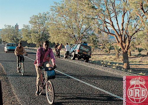 Чтобы увидеть спортсменов на маршруте и отснять динамику гонки, мы с оператором французского телевидения отправились наперехват (прямиком со старта на одну из точек в середине дистанции). Основную часть пути участники могли бы проделать на скорости, пользуясь сеткой накатанных троп и малозаметных колей. Но выходить непосредственно к пунктам GPS им приходилось по неторенному бездорожью. Под колесами могло оказаться все что угодно – пески, каменные осыпи, овраги... Кстати, очень скоро выяснилось, что наш план перехвата был хорош всем, за исключением сущего пустяка. Ни мы, ни сопровождавший нас экипаж судейского Jeep Cherokee совершенно не знали местность. В общем, так и не встретив участников, но вдоволь налюбовавшись пейзажами выветренных пустынных гор, мы заночевали где-то в…Алжире. Правда, то, что мы по неведению пересекли государственную границу, выяснилось только на следующий день, когда, двигаясь на запад, выехали к марокканской погранзаставе. Первым существом, которое нас там встретило, была необычайно мохнатая коза. Вслед за ней из-за забора вышли и бойцы-пограничники в растянутых тренировочных штанах и сильно поношенных гражданских куртках, причем все в разных. Поинтересовавшись, откуда мы и куда направляемся, они подсказали дорогу и напоследок посоветовали в Алжир больше не ездить: «На той стороне могут ненароком и голову отрезать»…