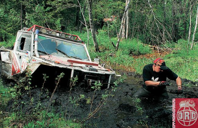 Трофи-рейд постепенно огибал Ладогу, и теперь мы находились в северной части великого озера. Шел шестой день гонки, спецучасток, названный «Мега-драйв», оказался очень насыщенным и разнообразным. Здесь были все виды препятствий, с которыми приходится сталкиваться отечественным любителям трофи-рейдов. Трасса начиналась с болота с глубоким ручьем посередине. При его преодолении три сэнд-трака у нас ушли на проводку правых колес, а левые пустили, склонив мелкий кустарник и положив на него последний сэнд-трак. Все удалось на славу, и болото мы форсировали быстро, оставив за собой два или три экипажа. После проезда по заболоченному лесу уперлись в речку, которую необходимо было переехать, приложить электронный чип к ответному устройству, висящему на дереве, вернуться в русло и по нему двигаться до заданной точки. Далее трасса вилась змейкой между озер, то поднимаясь резко вверх, то спускаясь с бесчисленных холмов, заросших сосновым лесом. Был здесь и пятидесятиметровый грязевой участок с полутораметровой глубиной (без объезда), несколько небольших бродов и…финиш. Афиниш – это всегда приятно, и неважно, каким ты приехал, организм автоматически расслабляется, и чувство свершенного долга (в случае сложной трассы и подвига) наполняет сознание. В этой связи надо заметить, что из 32 машин, стартовавших в ТР2, в преддверии последнего спецучастка в протоколе осталось всего… 10 экипажей. Примерно такая же статистика была по остальным категориям.