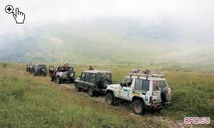 Непосредственно в экспедиционной части приняли участие 12 экипажей во главе с организатором фестиваля СергеемШинкаревым. 300 километров по горным серпантинам в сторону Майкопа и далее до Гуамки пролетели на удивление незаметно. Грузовиков встречалось мало, так что особых проблем с обгонами никто не испытывал. Постепенно дорога перешла в грунтовый серпантин, которым никто, кроме лесовозных «Уралов» и «КамАЗов», не пользуется. Потом грунтовку сменила каменная «тропа». Экипажи переключились на первую-вторую пониженную и неспешно продолжили путь. Нашей целью было уникальное Лагонакское нагорье, точнее, плато Лагонаки. Его уникальность – во флоре, аналогов которой нет во всем Кавказском заповеднике, и многочисленных пещерах (всего их около 130). Эти подземные лабиринты зачастую имеют глубину до 525 метров и протяженность до 4 километров. Нередки в этих местах и озера, причем местные водоемы можно разделить на два типа – постоянные и возобновляющиеся в период интенсивного таяния ледников.