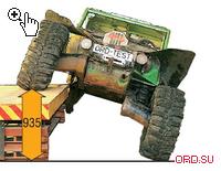 При тестировании на стенде ходы подвески оказались отнюдь не маленькими: при подъеме за одно колесо – 935 мм, а за два – 472 мм. Когда же дело дошло до опрокидывания, то «трофимобиль» удивил нас кренами – перед отрывом колес кузов наклонился почти на 60 градусов к горизонту! Но, поскольку угол наклона платформы при этом практически достиг 45-градусной отметки, говорить о плохой устойчивости в данном случае не приходится. Да, она меньше, чем у большинства стандартных внедорожников, но это один из лучших результатов для трофийных прототипов, проходивших наши тесты!