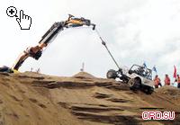 Кстати, о работе эвакуаторов. Мне еще не приходилось видеть внедорожных соревнований, на которых вопросы эвакуации были так четко продуманы и организованы. Около каждой трассы дежурили две бригады – одна наверху и одна внизу. Каждая из бригад состояла из нескольких волонтеров, готовых прийти на помощь в относительно простых случаях, если машина только заглохла или закопалась в песке, и одного-двух подготовленных для трофи внедорожников с мощными лебедками и буксирными тросами. Наконец, и наверху, и внизу дежурили силы «резерва главного командования» в лице мощного погрузчика и крана с телескопической стрелой. Их черед наступал тогда, когда случай оказывался совсем серьезным, например, у машины заклинивало трансмиссию, и она теряла способность перемещаться даже на буксире. Места размещения эвакуаторов были продуманы исключительно тщательно, так, чтобы любые нужные средства можно было задействовать буквально мгновенно. И нужно сказать, что без дела эвакуаторы не оставались.