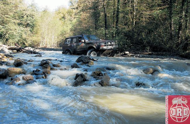 Далее участникам предстояло, двигаясь вдоль реки, найти правильную траекторию и несколько раз пересечь быстрый поток. Прямо скажем, задача эта была не из легких. Положение осложнялось еще и тем, что реки в этих местах склонны к перемещениям русла. В результате старые наезженные и, казалось бы, совершенно безопасные дороги то и дело упираются в практически отвесные обрывы, и участникам не остается ничего другого, кроме как возвращаться и искать пути объезда. И еще один важный момент: если при отсутствии дождей река Малая Хоста, как правило, не представляет трудностей для преодоления, то после хорошего ливня она наполняется с какой-то невероятной скоростью. В последнем утверждении участники «Бархатного сезона» могли убедиться буквально на следующий день.