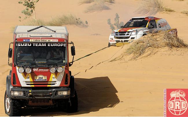 Неудача постигла и еще один российский экипаж. Сергей Шмаков и Константин Мещеряков сожгли сцепление и долго ждали техничку, которая дотащила их практически до финиша, после чего Сергей умудрился пересечь финишный створ самостоятельно, тем самым избежав большого штрафа и показав 106-й результат. Но в любом случае это происшествие серьезно усложнило для Шмакова задачу на следующий день и турнирную ситуацию. Зато у Павла Логинова, напротив, вроде бы все наладилось. После замены КПП и «мозгов» двигателя машину стало не узнать, а песчаная резина добавила уверенности в песках. В общем, экипаж постепенно прибавляет, да и команда Tecnosport исправилась – механики работают, как в былые годы.