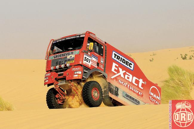 Итак, 6 января 2007 года. Старт. С первого же дня был задан темп гонки. Даже первый португальский СУ был пропитан жестким характером марафона. Рыхлый песок втянул в себя и новичков, и бывалых пилотов. Парабола страстей сразу взлетела почти на максимум. К удивлению участников, у многих еле-еле хватило топлива до финиша, а к старту грузовиков трасса и вовсе оказалась на грани закрытия. По судите сами: около 20 участников просто застряли. Встало несколько грузовиков! Не слыханное начало. И это при том, что европейцы ждали расправы с КамАЗом уже с первого этапа. А тут наши резко уходят вперед, хотя Чагину пришлось машиной валить деревья на трассе. Организаторы не рассчитали ширину для грузовиков. Из-за не уложившихся в норматив встал вопрос об отмене результатов в зачете грузовиков. Учитывая, что второй день не включал СУ для Т4, пришлось по волноваться, но все обошлось. Результаты оставили.
