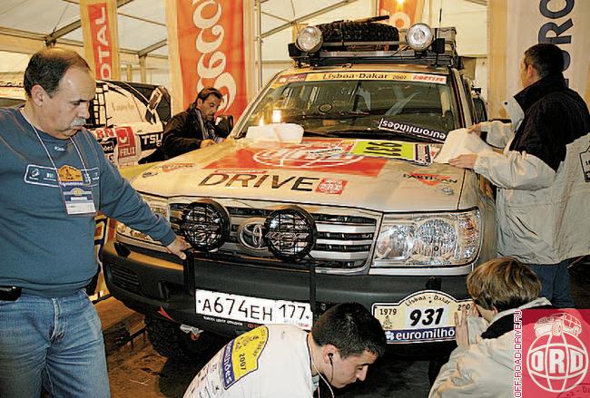 Потом вы проходите техническую комиссию и «обклейку», которая начинается с долгожданного момента. Это – сверление вашего полноприводного любимца и приклепывание к нему спереди и сзади пластикового дакаровского номера. Его цена потом доходит в Интернете до трехсот евро. Эти номера станут вашим пропуском по всему маршруту. Теперь, после ритуала обклейки автомобиля, вы начинаете ощущать некое братство людей, собравшихся покорить северо-западную часть Африки. Выезжая из ворот тех комиссии, вы вдруг замечаете, с каким почтением на вас смотрят зрители. Большинству все равно, что ваш номер на зеленом фоне. Все участники этой мега-экспедиции равны. Все они отправляются в Сахару. И если вы окажетесь на финише, вы – на финише! Никто не станет делить по ступеням ваши за слуги в этой самой большой и самой рискованной гонке на земле. Хотя, надо за метить, с мотогонщиками не сравнится никто. В отличие от автомобилей с багажниками, они получают пластиковый ящик объемом 40–50 л и складывают туда все, что хотят увидеть в ближайшие две недели. А потом – вперед от бивака к биваку. Круто?! При чем в этом ящике лежат и палатка, и ЗИП. 8500 километров, из которых 90% времени стоя. Скажу честно: на фоне этих ребят просто стыдно не выдержать что-либо. Да и цифра заявившихся – 235 мотогонщиков и 14 ATV– впечатляет. Кстати говоря, среди зачета мото – всего один Павел Федоров из Рос сии. Так что есть над чем работать нашим соотечественникам. А уж среди ATV тем более. Тут и заводские команды не мешают. Пока не мешают.