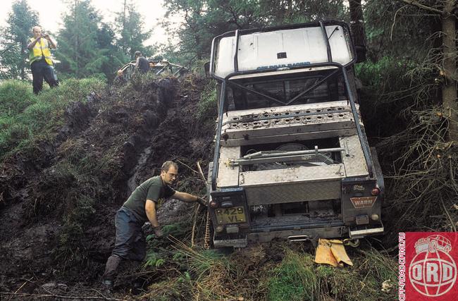 Самый «подлый» отрезок этого спецучастка располагался буквально перед финишем. Экипажам предстояло спуститься по склону крутизной по меньшей мере 45 градусов! И даже те, кто практически не использовал свою лебедку во время соревнования, не отважились броситься в открывшуюся «бездну» без помощи тягового устройства. Когда шедший первым Range Rover застрял на вершине булыжника, Брайан сдал назад и начал пробовать одну траекторию за другой. После нескольких попыток казалось, что все усилия тщетны. Но тут булыжник шевельнулся, и Брайан понял, что появился некоторый шанс. Используя свой Range Rover в качестве бульдозера (его энерговооруженность дополнили усилия членов команды), он, в конце концов, умудрился спихнуть обломок камня. Оставалось завершить спуск и финишировать. И они сделали это! Так или иначе, но четверка английских джентльменов на деле доказала, что она достойна звания победителя. И это несмотря на то, что команда не сумела пройти и половины из 25 спецучастков! Впрочем, организаторы Argyll Forest Challenge, похоже, и не рассчитывали на что-то большее…