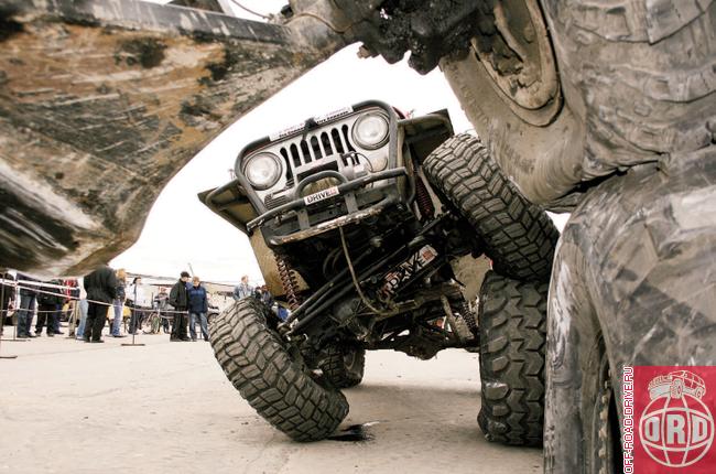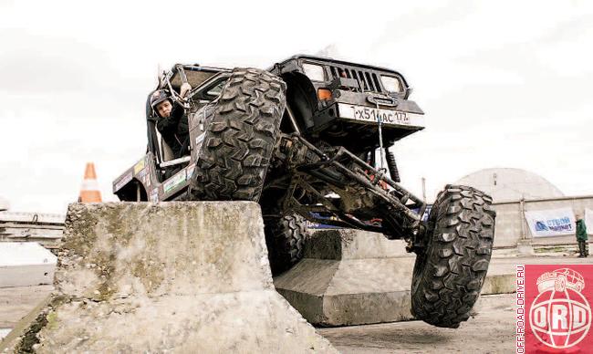 Судьи готовились, секретариат и пресс-центр трудились в поте лица, а в стане участников шло обсуждение: как поедут по триаль-ной трассе прототипы, подготовленные к... трофи-рейдам. Дело в том, что именно такой неожиданный сюрприз приготовили зрителям господа из ASG. Они пригласили поучаствовать известных в мире трофи спортсменов. Традиционная груда бетонных конструкций была менее грандиозной, нежели в Тольятти, но буквально изобиловала ловушками. Первая, по традиции самая простая, секция приняла участников, гостеприимно распахнув объятия. Главная проблема - дефицит места. С задачей минимизации включения задней передачи лучше всего справился Антон Филимонов на обновленном ProtoZavr. Собственно, и время он показал лучшее. Да еще и экипаж Viking немного не рассчитал заход на атаку довольно простых ворот и поймал четыре совсем не нужных штрафных балла. Похоже, что в данном случае влияние полноуправляе-мой техники будет еще более серьезным. Но идею с полным управлением тут же опроверг CJ-7 Виталия Гавинского. Чуть большее время прохождения секции, и при этом все те же четыре очка. Жаль, Wrangler Романа Щербова немного не поместился в воротах, тем самым принеся экипажу сразу пятьдесят «поводов» задуматься. А больше полноценно завершить секцию никому не удалось. И даже опытный Евгений Павлов, занявший место штурмана в «самопрыге» Сергея Щетинина, не смог повлиять на ситуацию. И демонстративный проезд по трем простым воротам «трофимоби-лей» как-то разбавил уныние по поводу сложности трассы.