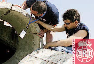угробами на машинах. Ночь выдалась не сказать, чтобы теплая, но, слава богу, это не отразилось на состоянии техники. Потихоньку выбралось из-за облаков солнце. Сейчас должны развернуться основные события. В секциях появились серьезные подъемы и опасный диагональный спуск, суливший эффектные «уши». Одна из траекторий была безопасна, но проходила через сложную каменоломню, другая же, очевидная и видимая невооруженным глазом, заставляла опасно маневрировать на вершине «хребта» без права на ошибку. В общем, следовало крепко подумать, прежде чем штурмовать эти ворота. Второй, очевидной, траекторией воспользовался Сергей Ерохин, показав мастер-класс по горизонтально-боковому спуску. То есть его Jeep Cherokee, не удержавшись на скользкой вершине, просто кубарем полетел вниз. Никто не пострадал, и даже каркас у бывшей машины Антона Филимонова не помялся. Но при этом несчастный Cherokee остался лежать, унеся с собой массу бетонной крошки и последние шансы на призовые места, добавив в копилку 952 очка штрафа. А ведь до этого момента отставание от лидера у Сергея составляло всего 66 очков, и любая сбитая лидерами вешка автоматически перемещала экипаж на третье место. Но что теперь сетовать… На том же месте получили свои штрафные очки Юрий Самодуров и Владимир Казак, сменив направление движения четыре раза. Заставил поволноваться и Виталий Гавинский, только уже не по поводу эффектного прохождения ворот. Он ухитрился финишировать со временем в девять минут пятьдесят девять секунд при контрольном времени десять минут. Вы бы видели его финишный спурт! Двигатель на ограничителе оборотов, прыжок через последнее препятствие, разворот в скольжении. Прямо дух захватывает...
