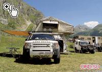 Очень много интересного в плане подготовки экспедиционных автомобилей и организации их внутреннего пространства можно было почерпнуть, общаясь со специально ' приглашенными автопутешественниками-марафонцами и глядя на их технику. Встречались самые разные концепции «домов на колесах». Но было и одно общее-основа: прочный внедорожный фундамент в виде Land Cruiser, Defender или вообще полноприводного грузовика. Что еще удивило, так это обилие серьезно подготовленных LR Discovery 3. Это у нас такой автомобиль вос-принимается как сугубо городской. А во Франции на базе последнего Disco 3 активно «строят» монстров для бездорожья! Оказывается, существуют даже электронные блоки, внедряемые в «мозг» хитроумной пневмопод-вески этого автомобиля, чтобы подчинить ее работу воле опытного водителя. В общем, интересных конструкций здесь хватало. Взять хотя бы «построенный» для себя Патрисом Райдером (глава Outback Import) Defender 130 -полноуправляемый экспедиционный хардтоп с радиусом разворота, как у машины с 90-дюймовой базой. (Рассказ об этом автомобиле читайте в следующем номере.)