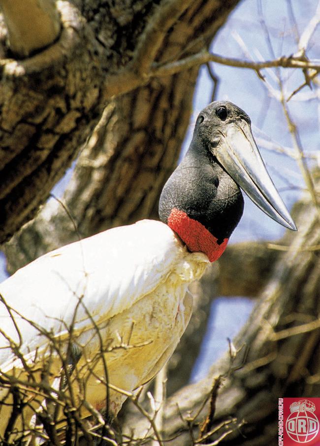 Без преувеличения можно сказать, что эта гордая птица с индейским именем «ту-ю-ю» являеется крылатым символом Пантанала. «Общечеловеческое» название этого представителя семейства аистовых - ябиру бразильский. Надо сказать, что это весьма солидная птица: рост взрослого ябиру составляет 1,2 метра, а размах крыльев может достигать 2,6 метров. Свои огромные гнезда птицы строят на высоких деревьях. Питаются они в основном рыбой, моллюсками и земноводными, но изредка . разнообразят свое меню пресмыкающимися и мелкими грызунами.