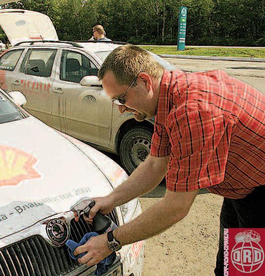 Здесь, наверное, уместно сказать два слова о машинах. Автомобили, стартовавшие с Манежной площади, - это Skoda Octavia Scout с двигателем 2.0 FSI мощностью 150 л.с. и 6-ступенчатой механической коробкой передач, подключаемым приводом на заднюю ось (происходит при помощи многодисковой муфты Haldex) и кузовом типа «универсал». В своей основе это та же Skoda Octavia 4x4, которая в свою очередь построена на платформе VW Golf. Но при этом автомобиль располагает новыми бамперами с защитными алюминиевыми накладками, дополнительными (и опять же защитными) молдингами вдоль кузова, расширенными арками колес, защитой днища спереди и сзади, а также увеличенным клиренсом (достигнут за счет изменений в подвеске и перехода на колеса увеличенного размера). В этой связи стоит отметить, что уже в октябре этого года с конвейера завода в Калужской области должна сойти первая Octavia российской сборки, а к 2009 году завод перейдет к полноценному производству проектной мощностью 115 тыс. автомобилей в год, так что интерес россиян к новому автомобилю вполне понятен.