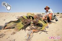 Петляя по усыпанным гравием равнинам и лабиринту каньонов, мы все больше удалялись от главных туристических маршрутов. И вот у небольшой долины, перекрытой природным земляным валом, обнаружили участок, покрытый засохшей и растрескавшейся грязевой коркой. Но при этом в трещинах была видна черная жирная грязь – знак того, что под поверхностью все еще сочится влага пересыхающего ручейка. А следовательно, местная живность обязательно соберется здесь, чтобы добраться до последней в этом сезоне воды. Мы разбили лагерь у края лощины и до самой ночи просидели в полнейшей тишине, надеясь увидеть зебр. Но они так и не пришли. А утром мы обнаружили в грязи отпечатки копыт полудюжины животных, все-таки прокравшихся к пересыхающему ручейку под покровом темноты. Ждать дальше было просто бессмысленно, тем более что в нескольких милях к северу мы обнаружили… вельвичиевый лес. Для тех, кто не в курсе: вельвичия – это растение высотой около метра, практически лишенное листьев. Правда, поскольку росли эти самые вельвичии на расстоянии нескольких десятков метров друг от друга, то лесом это место можно было назвать лишь с большой натяжкой. Считается, что вельвичия – одно из древнейших растений на нашей планете. Есть версия, что на языке местного племени это название означает «два листа, не умирает», но на самом деле вельвичия названа по имени ботаника Фридриха Велвича, нашедшего и исследовавшего это растение в 1860 году.