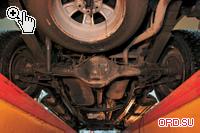 При пристальном взгляде снизу оба автомобиля скорее заставляют поверить в силу традиций, чем любоваться изяществом инновационных технических решений. Начнем с наиболее простого, то есть с Ranger. Обнаружить здесь хоть что-нибудь действительно новое не удалось. Если не брать в расчет полностью переработанный силовой агрегат FordDuraTorq TDCi, обеспечивший автомобиль незаурядной (если не сказать невероятной) динамикой и доработанные КПП и РК, то и рассказывать, в общем, становится не о чем. Проверенная временем простая конструкция классической Part-Time трансмиссии в сочетании с торсионной передней подвеской и рессорами сзади дают небезосновательную надежду на безоблачное будущее владельца.Потому какформулу «простота = надежность» никто еще не отменял. Некоторое смущение вызывают разве что незащищенный топливный бак, свисающий ниже рамы, и тормозные трубки заднегомоста, расположенные таким образом, что на бездорожье движение задним ходом не рекомендуется. Но это, пожалуй, мелкие придирки.