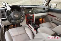 А вот салон Commander совершенно другой. Нет, он тоже в своем роде элегантен, но не в чистом понимании этого слова: красота его, скорее, в силе. Массивные оконные проемы, оставляющие остекление в пределах нормы, но не более, смотрятся не иначе как амбразуры. Вот она, классическая внешность автомобиля эпохи «после 11 сентября». Спрятаться, укрыться, почувствовать себя в уютном бункере... Одна панель приборов, обрамленная головками болтов под шестигранник, стоит целого трактата о «визуальной психологии». Но при этом в плане комфортной составляющей почти ничего нового. То есть именно «почти ничего нового относительно 1984 года»! Да, появилось электронное табло. Да, автомобиль способен анализировать давление в шинах. Да, добавилась регулировка педального узла. Но все это-лишь признаки времени, ничуть не выделяющие Commander из ряда конкурентов. Его секрет гораздо глубже: там, где сгорает топливо и его обращенная в силу энергия (то есть крутящий момент) доставляется ко всем четырем ведущим колесам.
