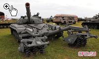 К военному поколению относятся и имеющийся в экспозиции средний Т-34-85, и тяжелый ИС-3, хотя вклад в Победу последнего свелся лишь к параду в поверженном Берлине. Остальные демонстрируемые бронированные машины – Т54, Т-55, Т-62, Т-64 и Т-80УД – технически более совершенны и относятся к последующим поколениям. Три первых танка участвовали в десятках больших и малых войн на всех континентах (за исключением Австралии и Антарктиды), иногда сталкиваясь на полях с точно такими же машинами другой стороны. Т-64 и Т-80УД на экспорт не поставлялись, являясь наиболее совершенными танками на вооружении Советской армии. Достаточно сказать, что именно на них была полностью отработана система ракетного вооружения, позволяющая бороться не только с танками, но и с вертолетами противника на большой дальности. Причем Т-80УД идентичен по вооружению и составу оборудования Т-80У (танку с газотурбинным двигателем), но оснащен дизельным двигателем с оппозитным расположением цилиндров.