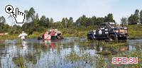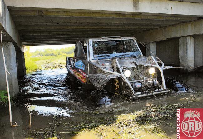 А вот, в общем-то, оправданный риск экипажа Александра Николаева и Дмитрия Калинина (ТР2) к успеху, увы, не привел. Когда перед последним бродом собралась очередь из пяти машин, стало ясно: ее, а заодно и экипаж Сергея Хальзева можно попробовать обойти… Требовалось лишь спуститься с холма на пару десятков метров правее и пройти по воде. Машина утонет по капот, но рискнуть стоит! Не удалось... Пожалуй, здесь никуда не спешил только Сергей Савенко. Выбравшись из последнего озерца, он вместо того, чтобы сломя голову мчаться на финиш, остался вытаскивать из брода соперников. И то правда: куда ему было спешить? Гонку-то он уже выиграл!..