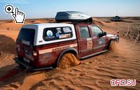 Land Cruiser из туристического агентства Кстати, в сфере туризма государственная поддержка выражается подобным же образом. Турфирмы могут приобретать автотранспорт без таможенных очисток. Результат шокирует: например, новая TLC 105 обходится туроператорам в… 20 000 (!) американских долларов! Но при этом на нее наклеивается специальный синий лейбл, означающий, что автомобиль принадлежит турфирме, и при продаже его нужно сначала растаможить. С другой стороны, спустя 3-5 лет (а больше машины в турагентствах не выхаживают) сумма выплат существенно снижается. О! Транспорт, используемый туристическими компаниями, – это вообще отдельная тема для разговора. В «списке» только две модели: Toyota Land Cruiser 105 (см.: «От шестисот тысяч до двух миллионов рублей за «сотку». С. 88) и Nissan Patrol Y61 (см.: «Поколение 61». ORD. 2006. № 2, 3). При этом доля Toyota составляет примерно 80–85%. Другие автомобили попросту не выдерживают подобной эксплуатации. Условия, в которых приходится трудиться этим рабочим лошадкам, легко представить на примере местной «105-й», служившей пресс-каром нашего автопробега. Машина за год прошла 210 тыс. км, из них по асфальту – максимум 60%, остальное по солончакам, пескам и грунтовкам. А если эти цифры помножить на то, что, как вы догадываетесь, особого обслуживания подобные автомобили не видят (хорошо, если масло иногда меняют)…