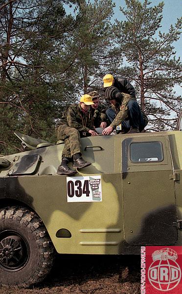 Три автомобиля выставила команда НИИ-21 МО РФ из города Бронницы. Народ там подобрался серьезный, да и машины впечатляли: два трехосных «Урал-4320» и флагман команды, четырехосный «Урал-5423». И автомобили, и спортсмены НИИ-21 неоднократно принимали участие в соревнованиях по трак-триалу, причем самого высокого уровня. Но еще более грозно выглядела бронированная разведывательно-дозорная машина БРДМ-2, выставленная заводом по ремонту бронетехники N22. Как известно, гонщики нередко называют свои машины «боевыми». Так вот, семитонная БРДМ с наклеенными на броневые борта стартовыми номерами вдвойне заслуживала определения «боевая». А от своих собратьев, несущих службу в войсках, «спотр-мобиль» отличался разве что снятым вооружением да парой дополнительных окошек с остеклением.