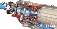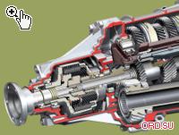 Момент с выходного вала коробки передач поступает на водило, затем через сателлиты распределяется между солнечной шестерней и эпициклом (коронной шестерней).
