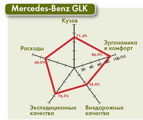 | Показатель | max. балл | Mercedes-Benz GLK 280 | Volvo XC60 | Audi Q5 |