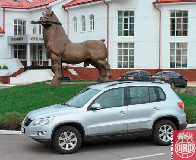 В Тульской области, чтобы найти бездорожье, даже не надо съезжать с асфальта — сама дорога напоминала собой сплошное минное поле. Рытвины и ухабы разнообразны как по своей площади, так и по глубине. Объезжать их было бесполезно — в попытках увернуться от одной ямы можно угодить в еще более глубокую. Здесь мы в полной мере оценили правильность нашего выбора экспедиционной машины — Volkswagen Tiguan. Столь адаптированной к нашим дорогам подвески давненько не приходилось встречать — все ухабы машина спокойно «проглатывала», практически не передавая удары на кузов. При этом VW Tiguan всетаки кроссовер и не предназначен для подобного рода экстрима.