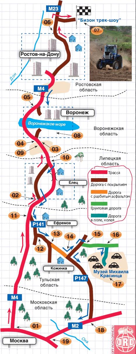 | 05 | N51.39’13” | E39.18’11” | Воронеж, объездная дорога, на Ростов-на-Дону — налево |