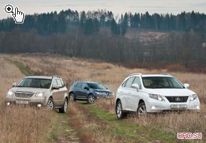 Встречается и обратная ситуация: все члены семьи единогласно хотят именно кроссовер, но, как только дело доходит до выбора, выясняется, что автомобили одного размерного класса, с близкими вроде бы (исходя из набора элементов трансмиссии) свойствами на бездорожье оказываются в разных плоскостях потребительского интереса по комфорту, эргономике, управляемости. Это положение как нельзя лучше иллюстрирует состав нынешнего сравнительного теста. Экспозиция такова: Subaru Tribeca — гость из-за океана, Nissan Murano — претенциозен и сбалансирован, рассчитан скорее на прагматиков, Lexus RX 350 — космополит с сильным креном на «премиальную» составляющую.