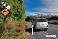 Накатавшись вдоволь, пообедав в местном баре рыбаков, мы выехали на основную транспортную артерию страны — дорогу SH1. Она пересекает государство с севера на юг. Я заметил: если на перекрестке у автомобиля вместо указателя поворота начинают работать щетки очистителя стекла, значит, за рулем европеец. Вот и я пару дней привыкал к тому, что под левой рукой не выключатель указателя поворота — хорошо хоть педали не поменяли местами. Еще было важно запомнить правило поворота с главной дороги налево: если движущийся вам навстречу автомобиль поворачивает направо, а вы решили свернуть налево, то именно вы должны уступить дорогу. Главное, соблюдать скоростной режим, ибо крестиков и венков вдоль дороги за двадцать лет я повидал немало. Большая проблема в Новой Зеландии — пьяные за рулем (в стране идет нешуточная борьба с нарушителями), да и права здесь можно получить с 14 лет. Все это требует максимального внимания.