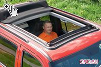 Мне очень хотелось на Cherokee уехать за город, прокатиться, так сказать, с ветерком, и в выходные я осуществила свою мечту. Отъехав около 50 км, где нет такой гари да и машин немного, я открыла большой люк на крыше (в нашей версии была такая опция). В салоне много света, над головой — синее небо и ласковое солнце. Ну чем не кабриолет? За эту опцию, я думаю, Jeep Cherokee можно простить все недостатки.