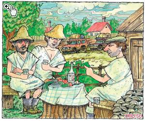 Снова пришла суббота. На этот раз, напарившись, соседи заседали в самой бане — на улице похолодало.