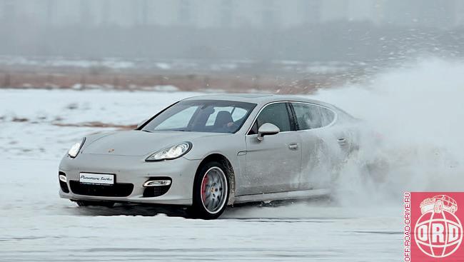 Перед въездом на трассу, проложенную сквозь снежную пустошь Тушинского аэродрома, замерла вереница разноцветных суперкаров. Вкусить все прелести русской зимы готовятся две модификации Porsche Panamera, Cayman S, Boxster S и Ее королевское Величество 911 Carrera 4S! Не пройдет и часа, как болиды вый дут из напряженного оцепенения, и окрестности аэродрома содрогнутся от рева V-образных «восьмерок» и металлического рявканья шестицилиндровых оппозитников. А пока нас инструктирует Олег Кессельман, знаменитый титулованный спортсмен и председатель Porsche Club Russland. Из-за капризов погоды трасса оказалась скованной льдом и кое-где присыпанной снегом, что усложнило драйв. В таких условиях следует тщательно следить за балансом своих действий: перед поворотом заранее отпустить педаль газа, загрузить передок и плавно повернуть. Деликатность и «двигательная экономичность» являются основополагающими принципами вождения на таком покрытии. В противном случае не ровен час развернет.