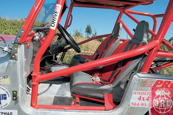 По словам пилота (а заодно и конструктора автомобиля), такие технические решения призваны обеспечить, с одной стороны, высокую энергоемкость подвески и высокую точность управления (за счет малых динамических ходов передней подвески), а с другой – достаточное скрещивание мостов за счет величины хода отбоя задней подвески. И вообще, у меня сложилось ощущение, что этот автомобиль «заточен» именно под динамичный стиль преодоления препятствий.