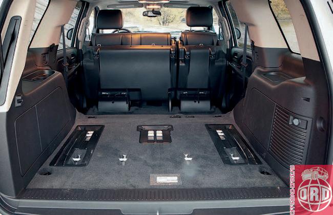 Нетрудно заметить, что автор этих строк закоренелый фанат модели. А если абстрагироваться от субъективноэмоциональной стороны вопроса? Узлы и агрегаты хорошо знакомы: рамная конструкция, автоматически подключаемый полный привод on demand, неплохо зарекомендовавшая себя V-образная «восьмерка» семейства Vortec объемом 5,3 л с одним нижним распредвалом и системой отключения половины цилиндров (Active Fuel Management) при малых нагрузках для лучшей топливной экономичности. Модернизация коснулась коробки передач: старый четырехступенчатый автомат, которым уже около двадцати лет комплектовались джиэмовские полноразмерники, передал эстафету куда более современному шестиступенчатому агрегату 6L80. В список нового стандартного оснащения добавились мультимедийная система с монитором в потолке для «посетителей» второго ряда сидений, передние боковые подушки безопасности, вентиляция сидений, разъем под USB в центральном подлокотнике и опциональная камера заднего вида, отображающая картинку на внутрисалонном зеркале.