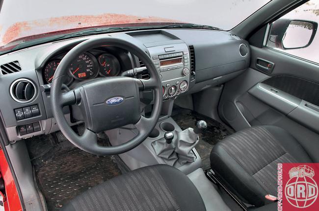Если продолжить разговор о наиболее важных для коммерческих автомобилей качествах, то после грузовых способностей на первый план выходит, конечно, удобство управления. И это не случайно, ведь зачастую водители подобных авто проводят за рулем очень много времени. Впрочем, если исходить из моей многолетней практики, управлять современным грузовиком ничуть не сложнее, чем хорошей дорогой легковушкой. Ford Ranger в этом отношении не стал исключением. Несмотря на кажущийся аскетизм как в оформлении внутреннего убранства кабины, так и в настройках рабочего места водителя, найти необходимую позу не составит труда даже для весьма привередливых индивидов. Отличаются «дружелюбностью» и основные органы управления — так, педаль сцепления имеет оптимальные и ход, и усилия, а самое главное, очень информативна. Нет нареканий и в адрес работы механизма выбора и включения передач — нужные ступени рычаг находит практически самостоятельно и без заметных усилий со стороны водителя. Да даже рулевое управление, несмотря на то что имеет от упора до упора более четырех оборотов, достаточно достоверно передает пилоту информацию, происходящую в зоне контакта управляемых колес и дороги. В общем, с этой точки зрения у Ranger с одинарной кабиной все благополучно, а из недостатков, пожалуй, стоит лишь отметить повышенную склонность порожнего автомобиля «помести хвостом» в заднеприводном режиме на скользком покрытии при передозировке тяги и присущий многим пикапам подброс задней оси при проезде неровностей.