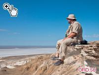 Недалеко находится сор Сам. Решаем заехать. Сор этот громаден. Настоящая соль в чистом виде! А вот двигаться обратно по своей колее было ошибкой: моя машина стала закапываться. Я схватился за рацию, но было уже поздно — оба уазика плотно сидели. Мы собрали все удлинители и с трудом, цепляя одну машину за другую, выбрались из ловушки. Но отъехали недалеко — отвалился глушитель.