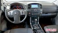 Силовой агрегат Pathfinder размещен спереди продольно. В мостах установлены простые симметричные дифференциалы (Д). В раздаточной коробке межосевого дифференциала нет. Водитель может выбирать режимы работы трансмиссии с помощью селектора, размещенного на центральной панели. В режиме Auto действует система torque-on-demand (Т), когда при движении по ровной сухой дороге с постоянной скоростью ведущими являются только задние колеса, но, если одно из них начинает проскальзывать, в действие вступает многодисковая фрикционная муфта, исполнительным элементом которой является электромагнит, и часть тяги передается на передний мост. В режиме 4H муфта заблокирована практически полностью, и распределение момента между мостами зависит от условий сцепления колес с дорогой. А вот при активировании понижающей передачи (ПП) момент в раздаточной коробке на передний мост передается в обход муфты, что повышает внедорожные свойства машины. Оба последних режима рекомендуется использовать только на плохихи дорогах и только на скорости до 50 км/ч.