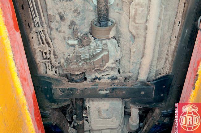 Amarok силовой защиты поддона мотора лишен, при этом до земли под передним мостом по центру просвет почти равен фордовскому. Повредить картер двигателя, прикрытого снизу стабилизатором поперечной устойчивости, можно разве что на действительно тяжелом офф-роуде. Так что если выбираться в глушь, листовая защита не помешает. Топливный бак и элементы выхлопного тракта в центральной части, висящие ниже рамы автомобиля, выбиваются из довольно «стройного» ряда узлов и агрегатов, поджатых под днище, и могут первыми пострадать на рельефе.