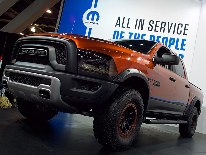 Как вы уже прочитали в анонсе, одной из самых интересных премьер, по крайней мере, в категории пикапов, ежегодной выставки SEMA Show 2015, проходившей в Лас Вегасе со 2го по 6е ноября, был пикап Dodge RAM Rebel X. Его, на базе обычного Dodge RAM 1500 Rebel создала фирма Мопар (Mopar), по сути, являющаяся придворным ателье Крайслера.